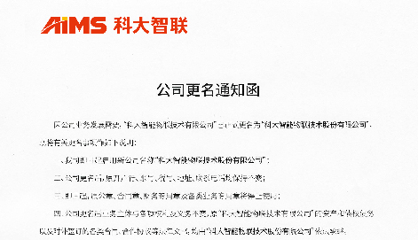科大智联新LOGO英文采用「AIMS」,即「Artificial Intelligence Manufacturing Solutions」,代表公司将进一步加大以人工智能为代表的新技术的研发与应用,强化公司以新技术赋能制造业的使命。新标志采用更加现代的设计风格,沿用经典红色,象征热情、朝气的服务精神。